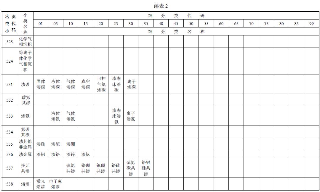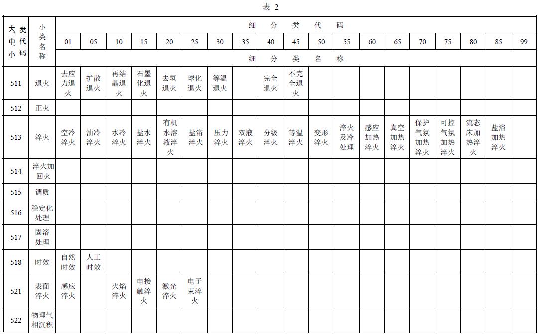 熱處理工藝方法細(xì)分類的名稱及代碼按表2的規(guī)定。